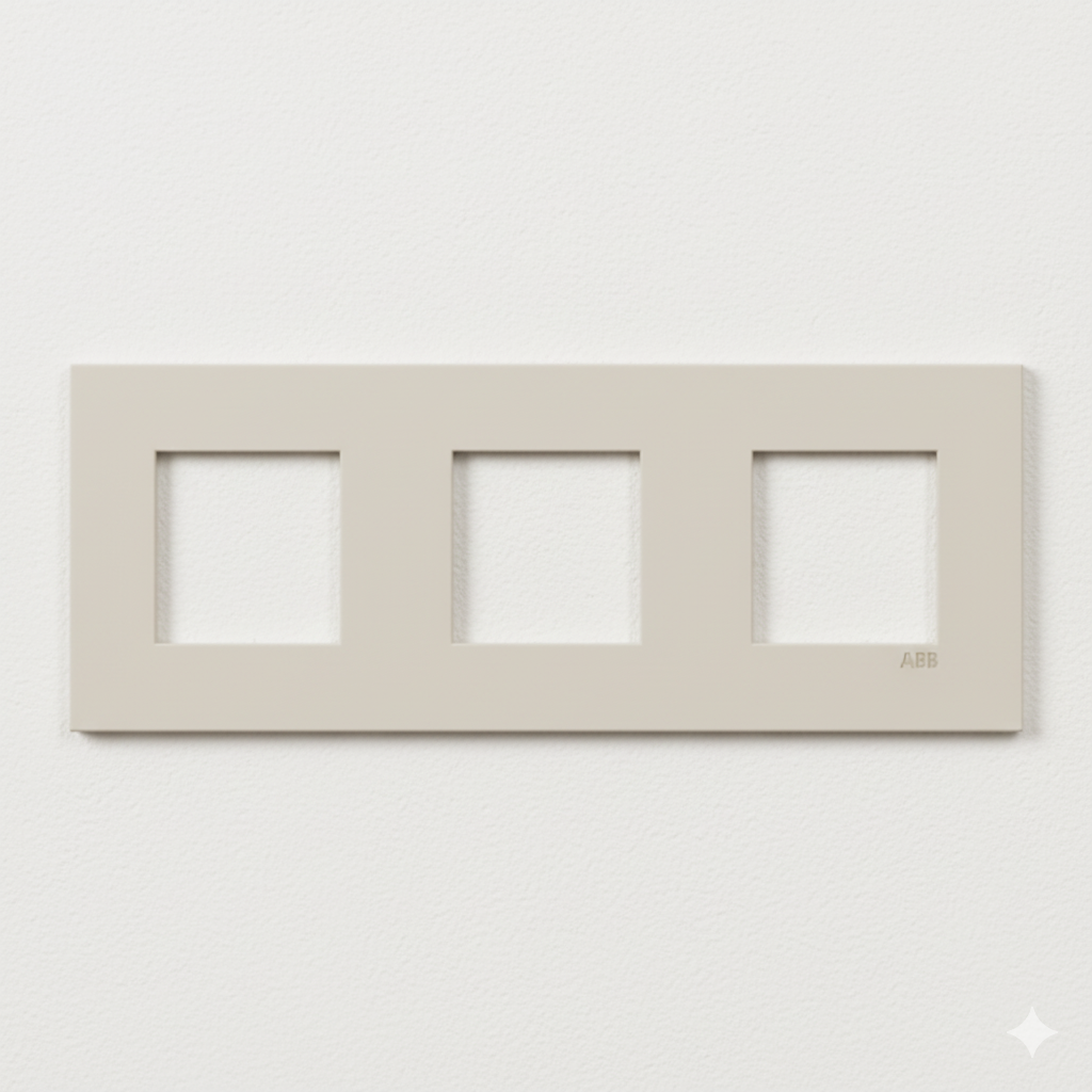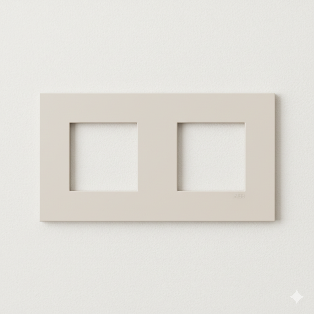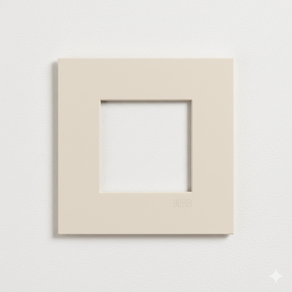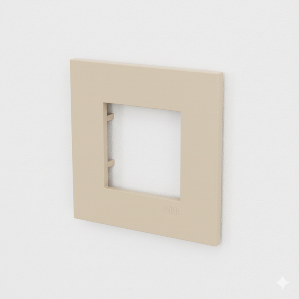 A sophisticated and minimalist Zenit S series frame in Dune with the ABB logo. Its ultra-slim profile of just 4.9 mm blends perfectly with any modern interior, creating a seamless effect with the wall. The Zenit series is the first to be certified with Ecodesign, ensuring sustainability without compromising quality.