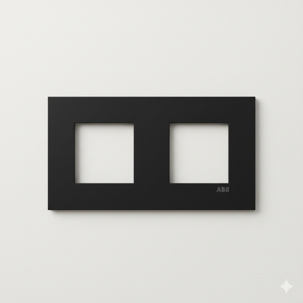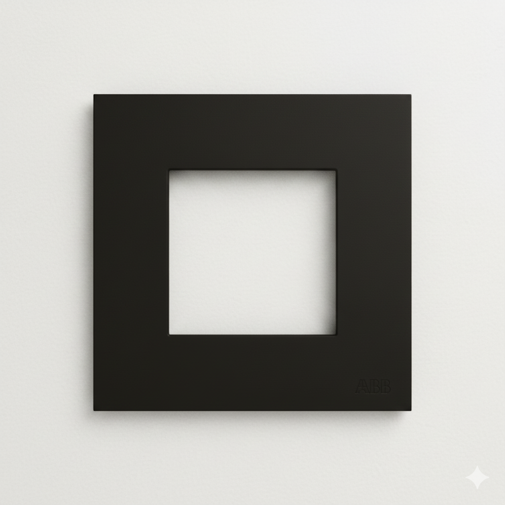 A sophisticated and minimalist Zenit S series frame in Matt Black with the ABB logo. Its ultra-slim profile of just 4.9 mm blends perfectly with any modern interior, creating a seamless effect with the wall[cite: 2130]. The Zenit series is the first to be certified with Ecodesign, ensuring sustainability without compromising quality[cite: 9, 64].