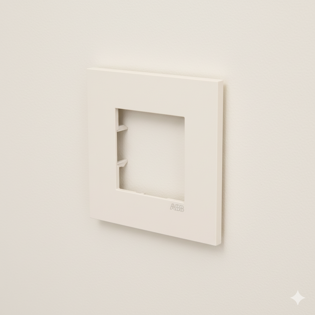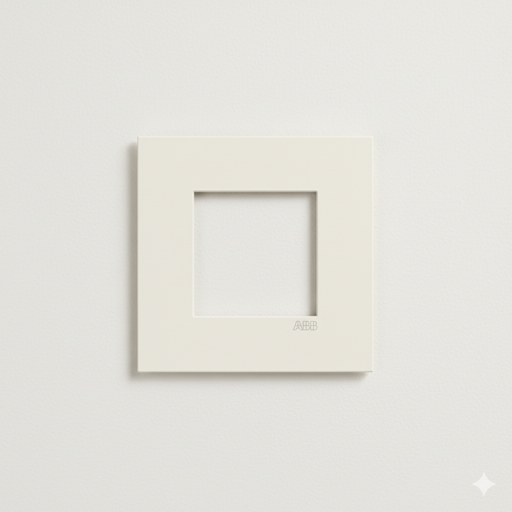 A sophisticated and minimalist Zenit S series frame in White with the ABB logo. Its ultra-slim profile of just 4.9 mm blends perfectly with any modern interior, creating a seamless effect with the wall. The Zenit series is the first to be certified with Ecodesign, ensuring sustainability without compromising quality.
